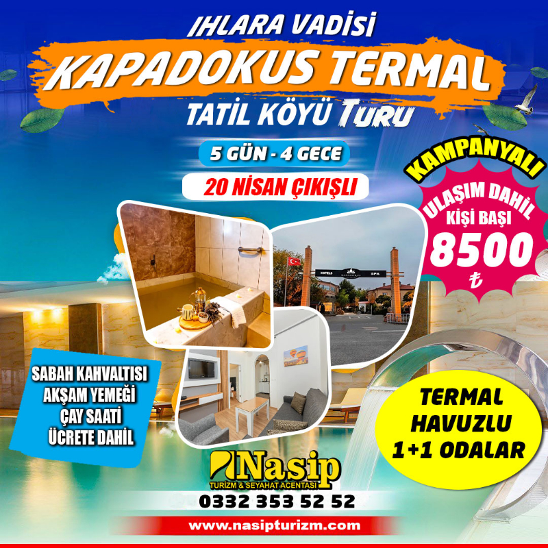 Dahil 4 Gece Konaklamalı 5 Gün KAPADOKUS TERMAL TATİL KÖYÜ Turu Ulaşım Dahil Kişi Başı Sadece