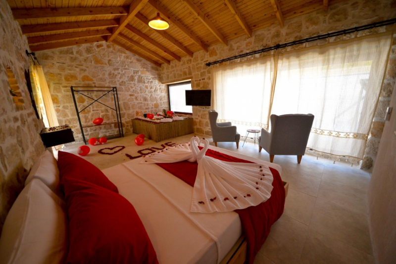 1: Yatak Odası: Çift kişilik yatak, klima, jakuzi, komodin, elbise dolabı, makyaj masası, tv, banyo ve tuvalet bulunmaktadır.